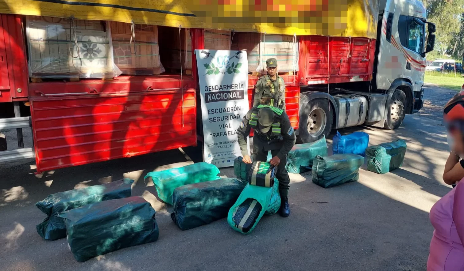 En la tarde de ayer el Escuadrón Seguridad Vial “Rafaela” de Gendarmería revisó un camión que se encontraba estacionado a la altura del kilómetro 220 sobre la Ruta Nacional N° 34 y encontró bolsas sospechosas.